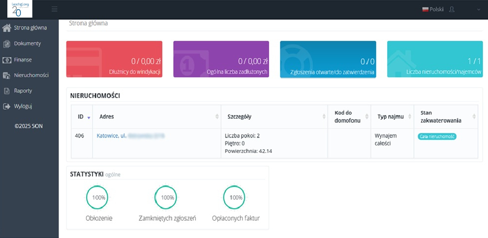 Klienci Systemu Obsługi Najmu mają dostęp do najważniejszych informacji dotyczących swoich nieruchomości przez 24 godziny na dobę, 7 dni w tygodniu poprzez Panel Klienta